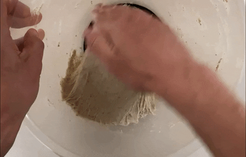 The temperature has a huge affect on the final loaf. Ideally, try to keep the dough at an approx temp between 22°C – 26°C, no worries if not, my kitchen is pretty cold in comparison (20°C). It just means that the bulk process will take slightly longer if the dough is colder. I like to proof my bread in the same spot to keep consistency, this is next to the heater to try and keep it at 23°C.
